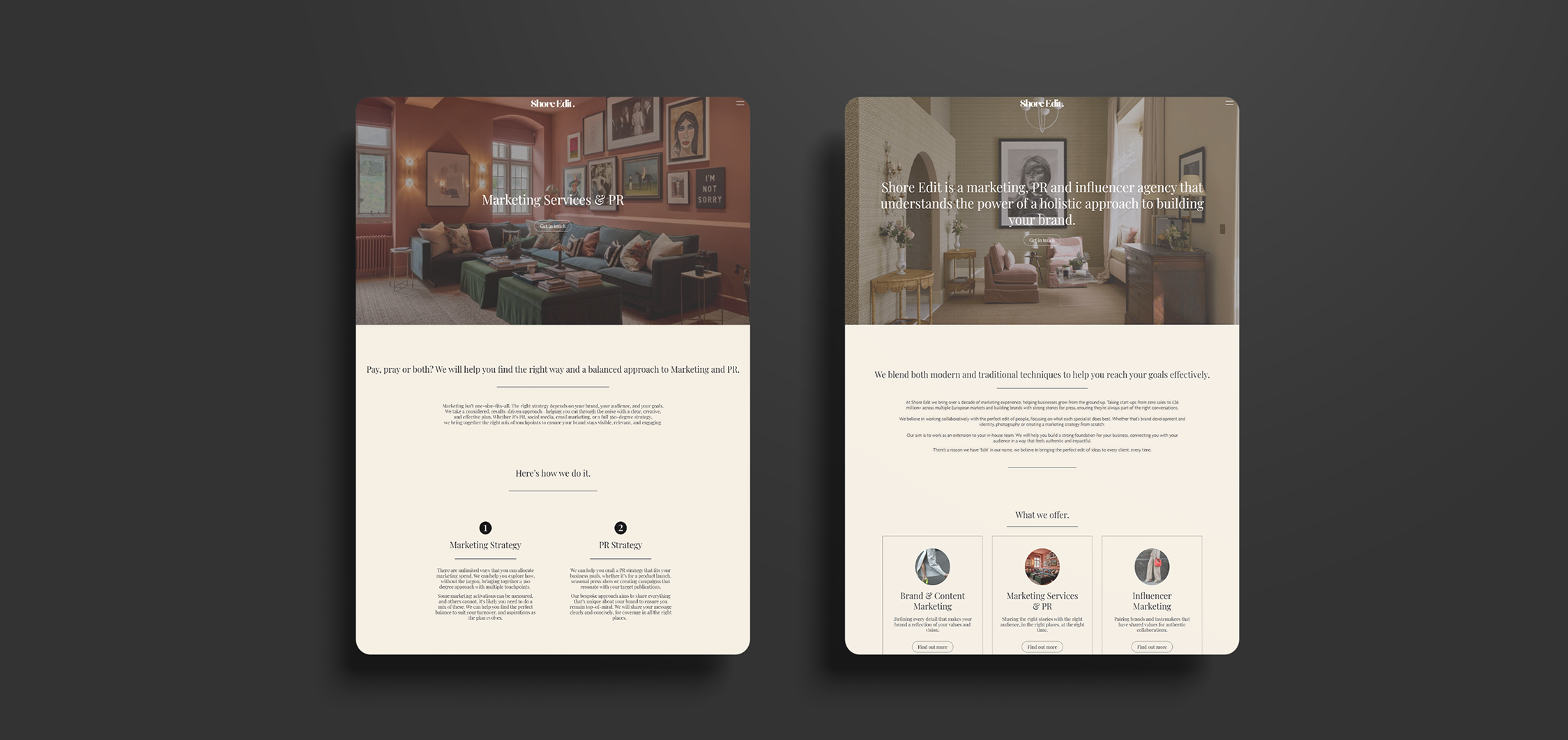 Shore Edit had built a strong reputation in marketing, content, PR, and influencer partnerships, helping brands grow and connect with their audiences. However, their existing website did not clearly communicate the breadth of their services or the way they work with clients. Many visitors were likely unsure what Shore Edit offered or how the agency could help them, which risked losing potential leads and diluting the brand’s distinctive creative voice.